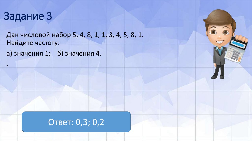Задание 3В числовом наборе 5 значений. Частоты четырёх