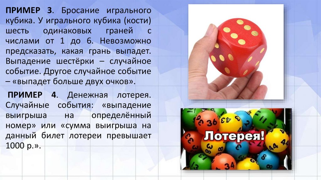ПРИМЕР 3. Бросание игральногокубика. У игрального кубика (кости)