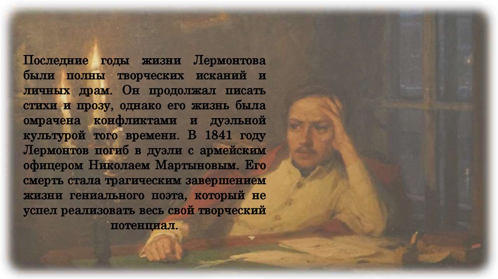 Творчество М. Ю. Лермонтова оказалозначительное влияние на последующие