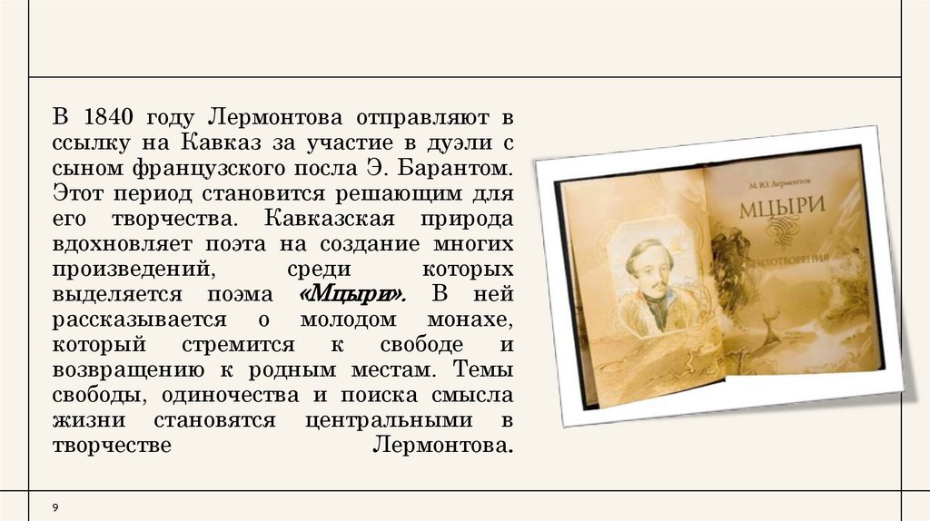 12. Лермонтов также исследует тему любви в своих прозах. В «Герое нашего времени» он показывает, как любовь может быть