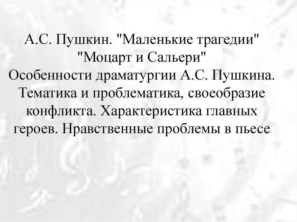 1. А.С. Пушкин. "Маленькие трагедии" "Моцарт и Сальери" Особенности драматургии А.С. Пушкина. Тематика и проблематика, своеобразие