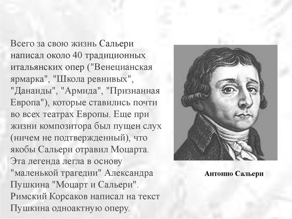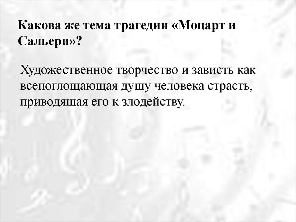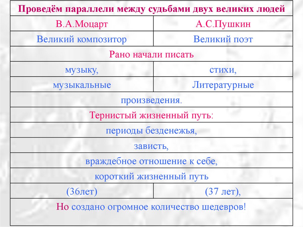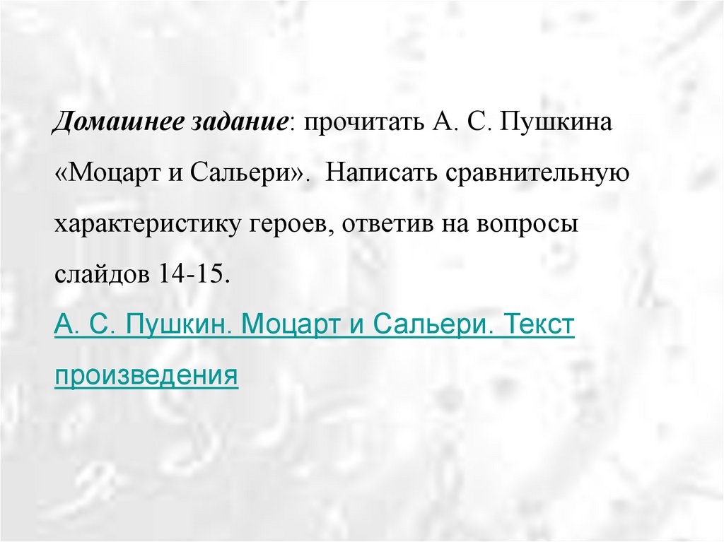 Домашнее задание: прочитать А. С. Пушкина«Моцарт и Сальери». Написать сравнительную
