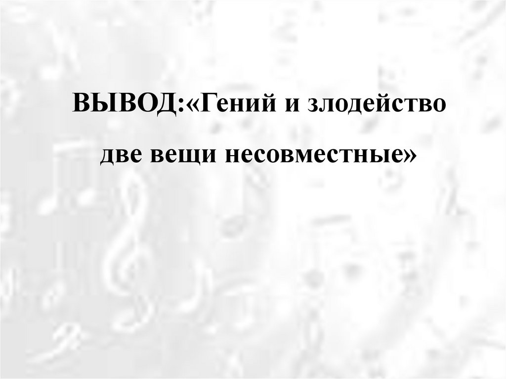 ВЫВОД:«Гений и злодействодве вещи несовместные»