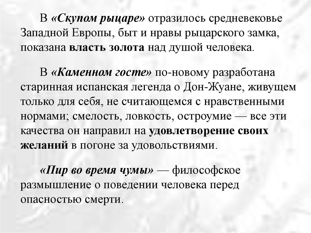 5. В «Маленьких трагедиях» А.С.Пушкин показал всепоглощающие душу человека страсти и пороки. Какие?
