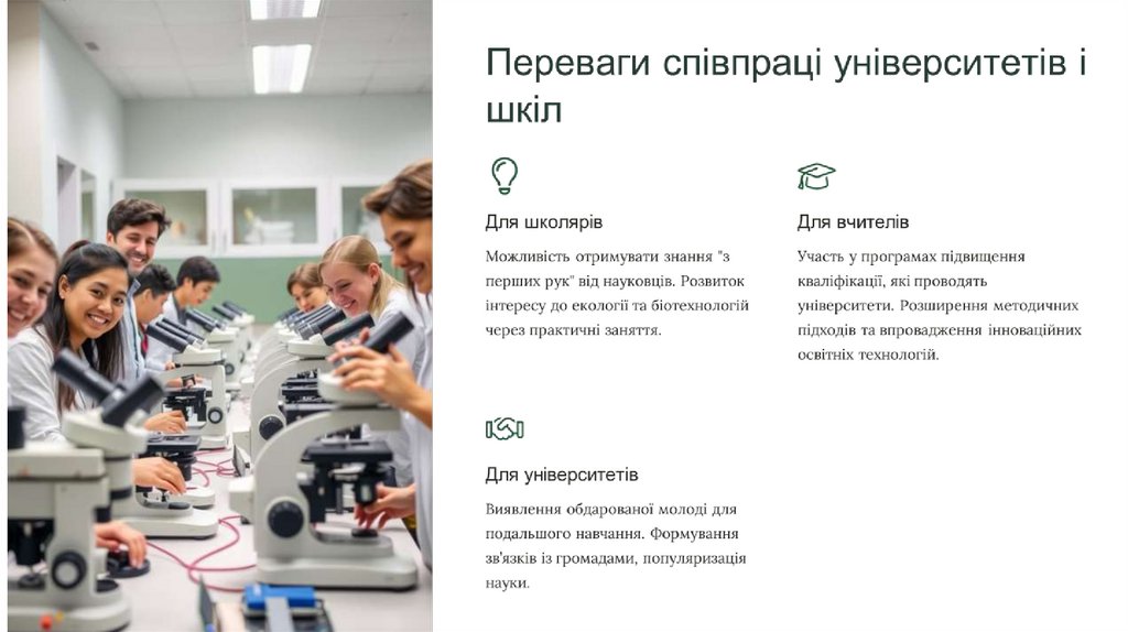 лабораторіях. Залучення школярів до реальних дослідницьких завдань.