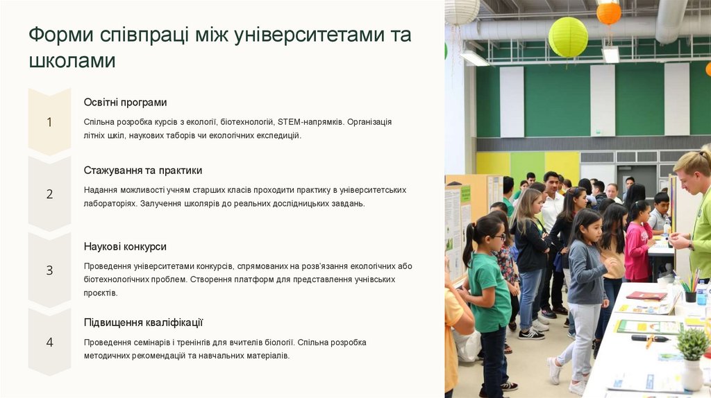 біотехнологічних проблем. Створення платформ для представлення учнівських