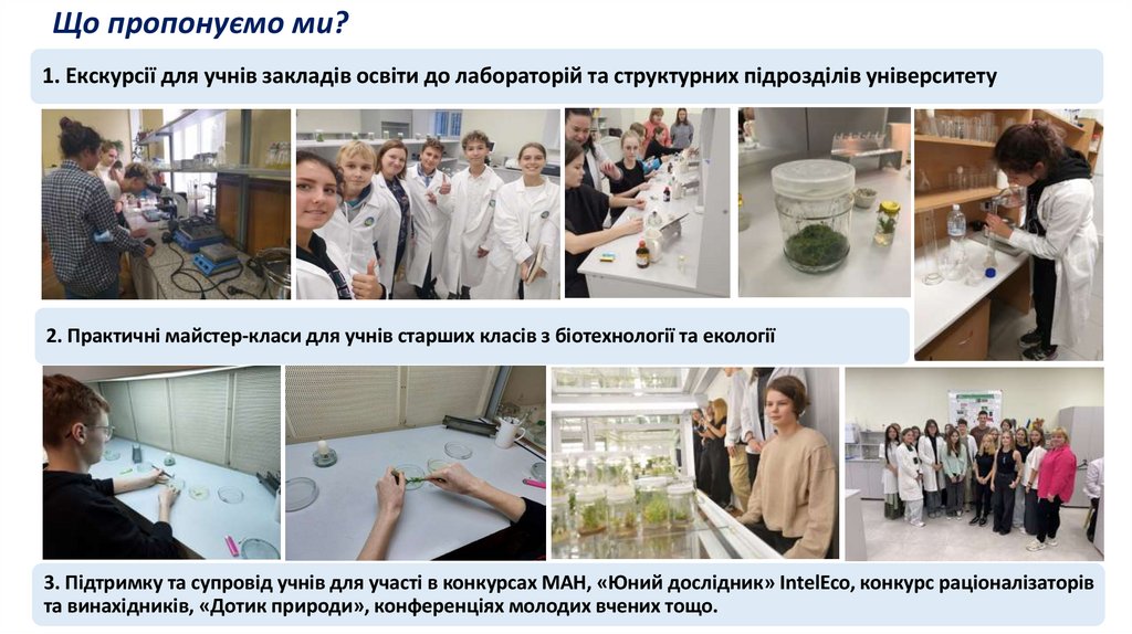Що пропонуємо ми?1. Екскурсії для учнів закладів освіти до лабораторій та структурних підрозділів університету