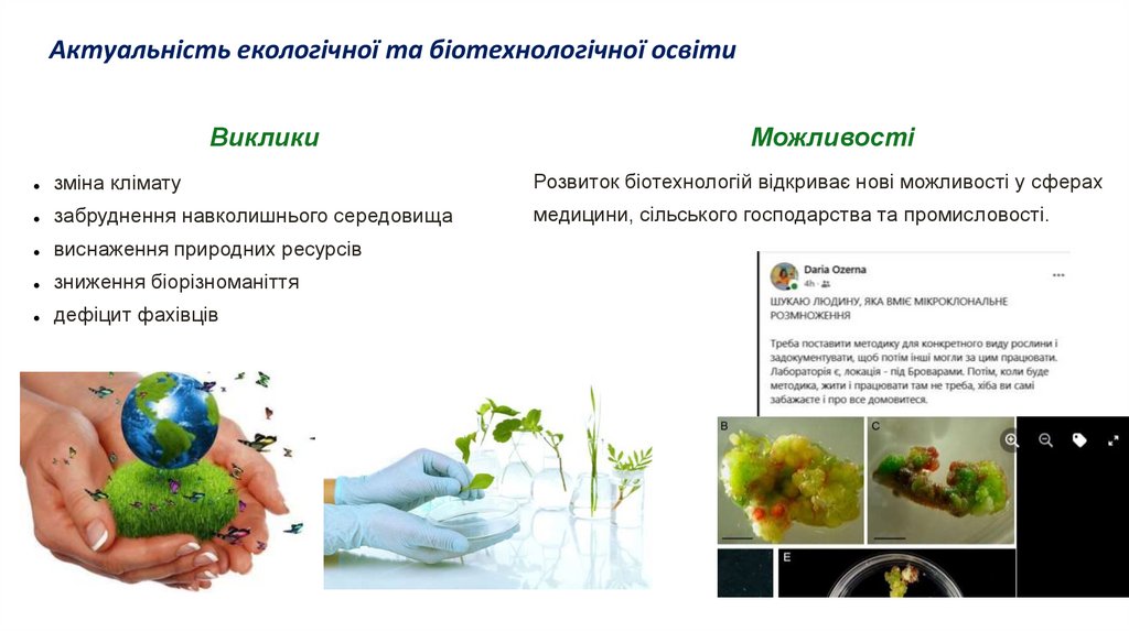 Актуальність екологічної та біотехнологічної освітиВиклики