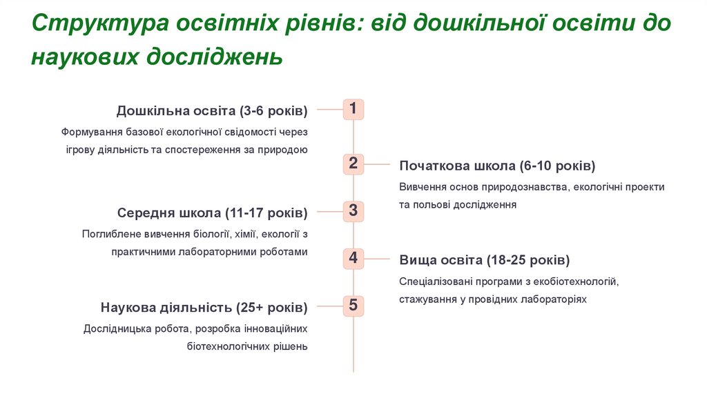 Структура освітніх рівнів: від дошкільної освіти донаукових досліджень