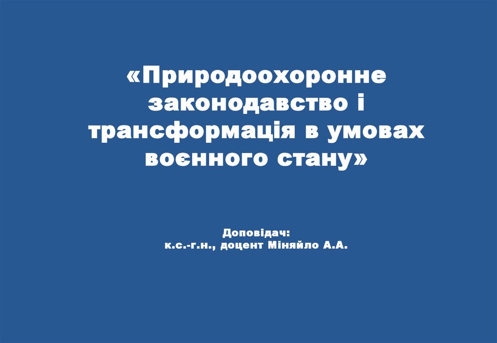 1. «Природоохоронне законодавство і трансформація в умовах воєнного стану» Доповідач: к.с.-г.н., доцент Міняйло А.А.