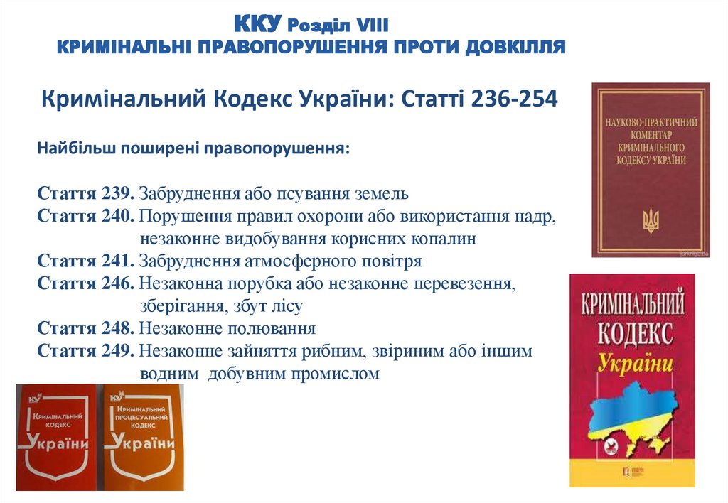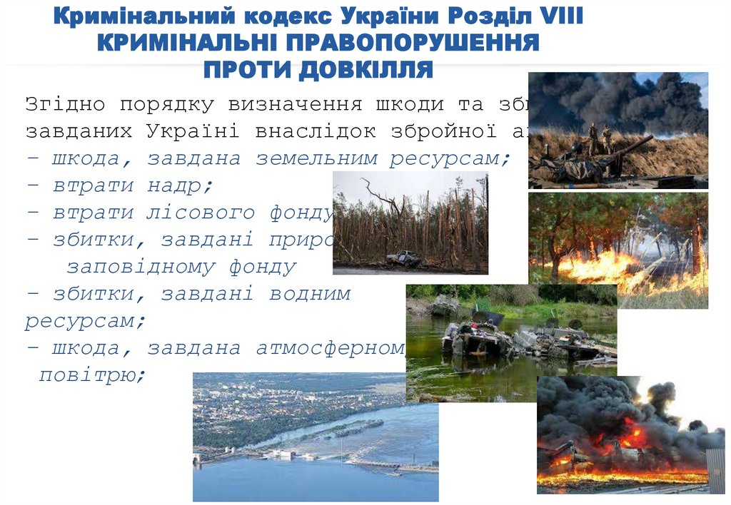 ККУ Розділ VIIIКРИМІНАЛЬНІ ПРАВОПОРУШЕННЯ ПРОТИ ДОВКІЛЛЯ