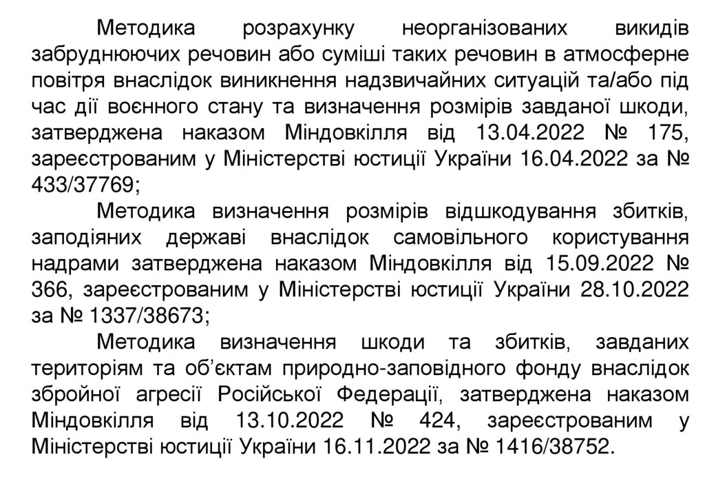 Методика визначення шкоди та збитків, завданих