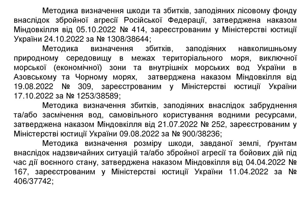 Методика визначення шкоди та збитків, заподіяних лісовому фондувнаслідок збройної агресії Російської Федерації, затверджена наказом