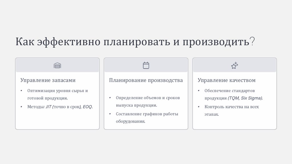 Цель: обеспечить эффективность, качество и рентабельность операций.