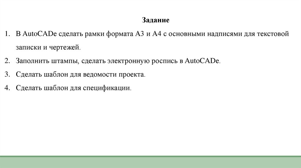 Задание1. В AutoCADе сделать рамки формата А3 и А4 с основными надписями для текстовой