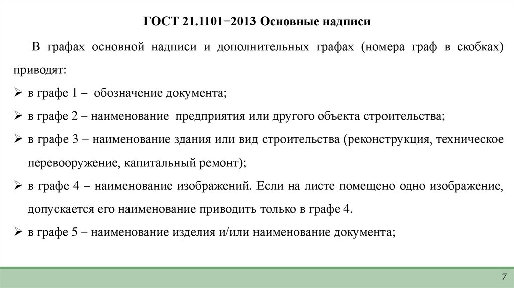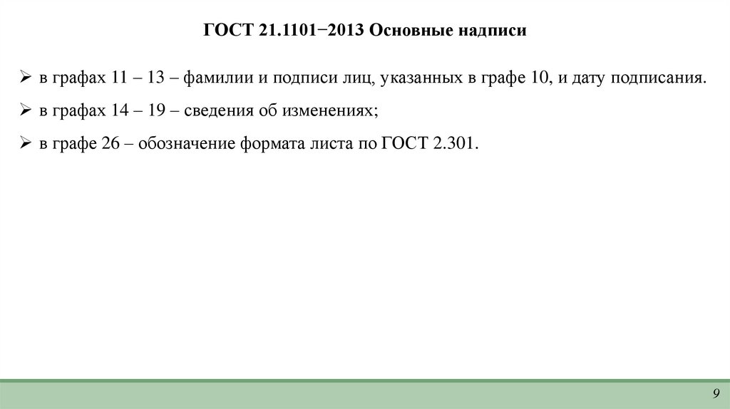 ГОСТ 21.1101−2013 Основные надписив графах 11 – 13 – фамилии и подписи лиц, указанных в графе 10, и дату подписания.