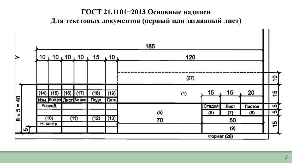 ГОСТ 21.1101−2013 Основные надписиДля текстовых документов (первый или заглавный лист)