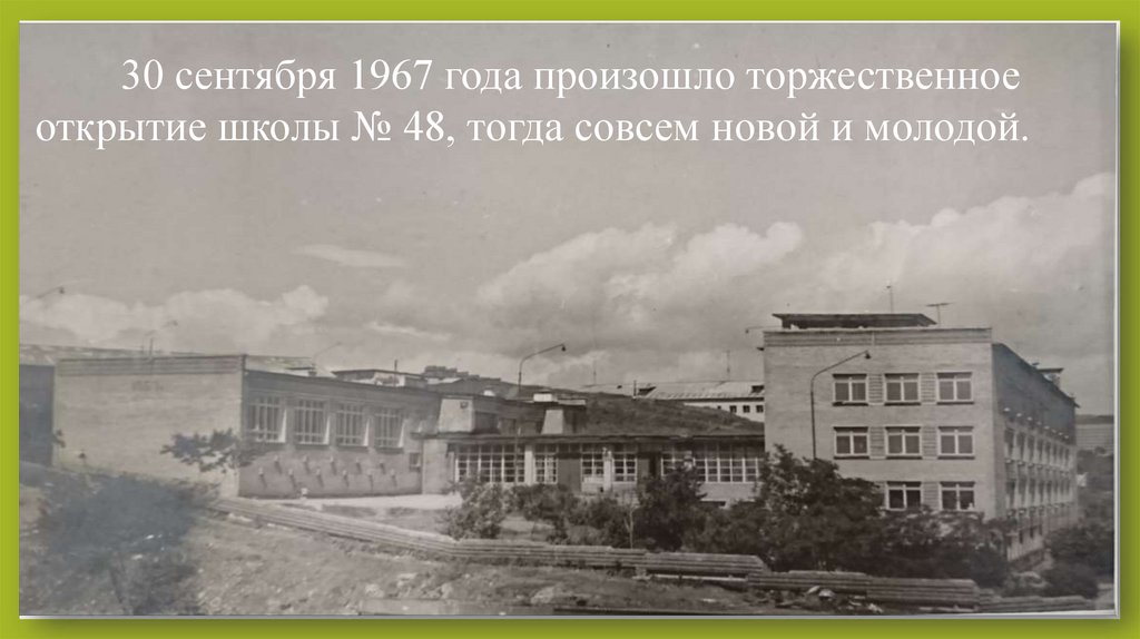 30 сентября 1967 года произошло торжественноеоткрытие школы № 48, тогда совсем новой и молодой.