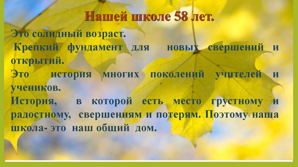 Нашей школе 58 лет.Это солидный возраст.