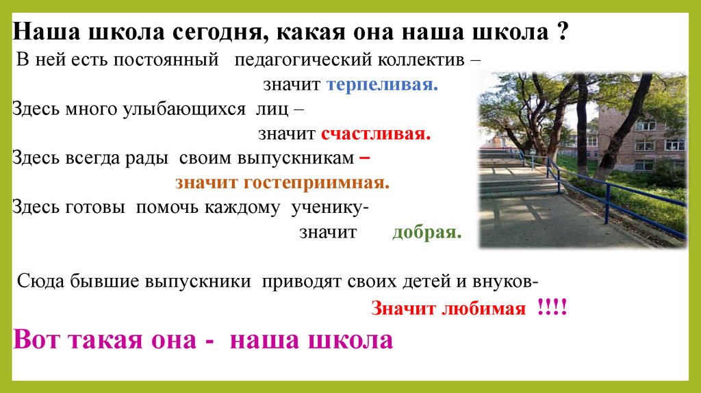 Сюда бывшие выпускники приводят своих детей и внуковЗначит любимая !!!!