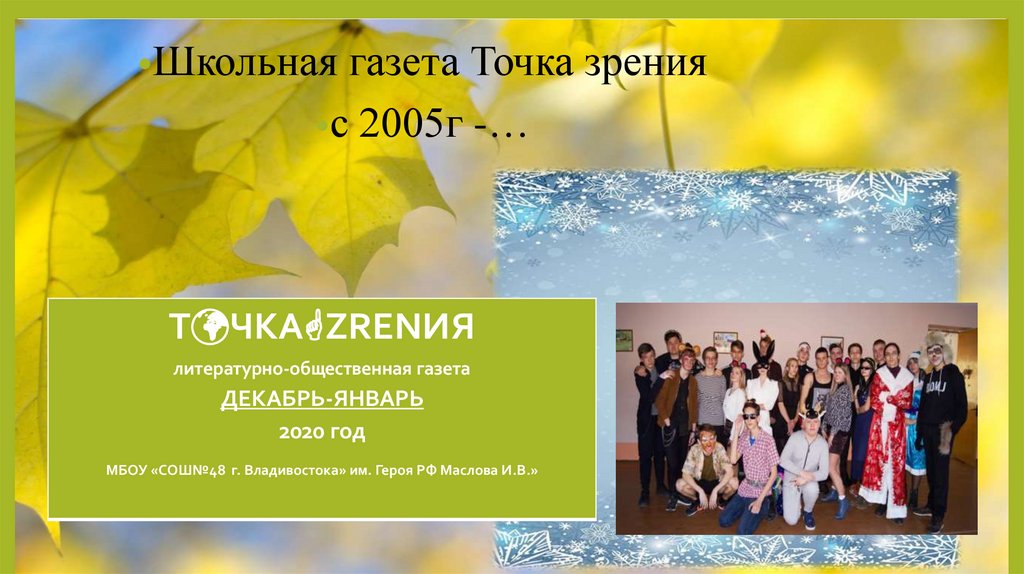 •Школьная газета Точка зрения•с 2005г -…