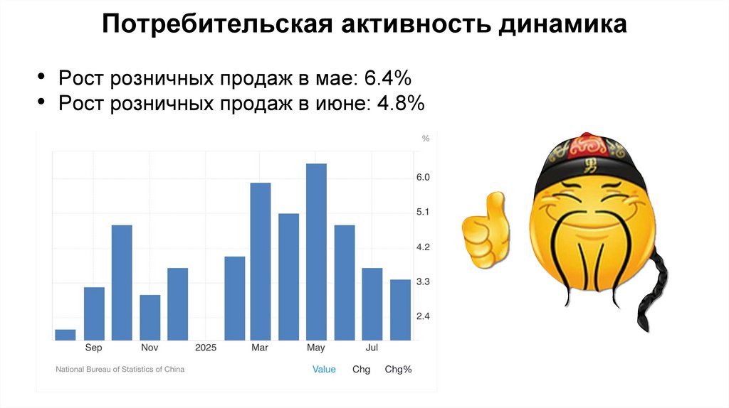 Потребительская активность динамика• Рост розничных продаж в мае: 6.4%