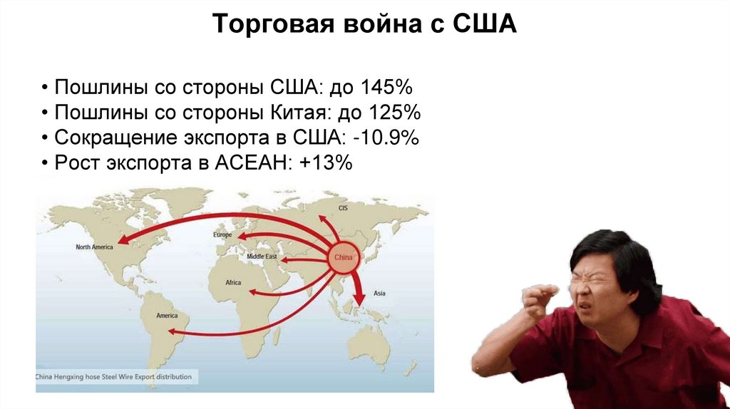 Торговая война с США• Пошлины со стороны США: до 145%