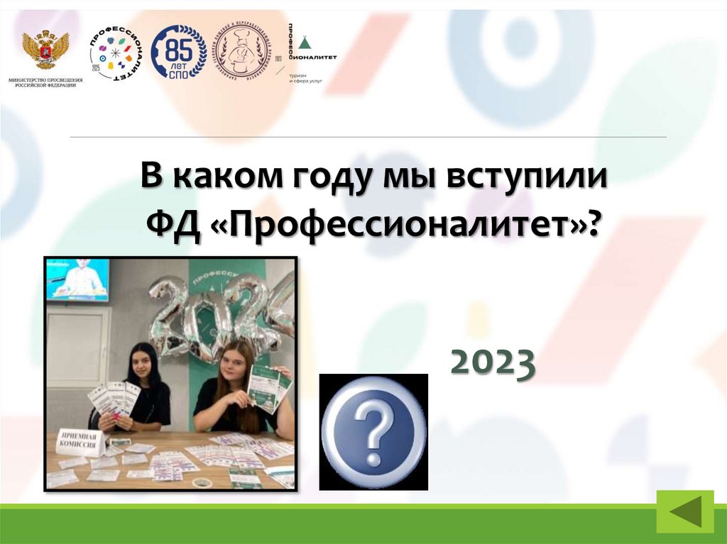 В каком году мы вступилиФД «Профессионалитет»?