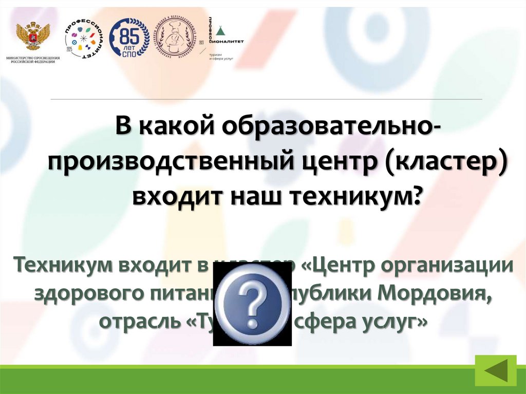 В какой образовательнопроизводственный центр (кластер)входит наш техникум?