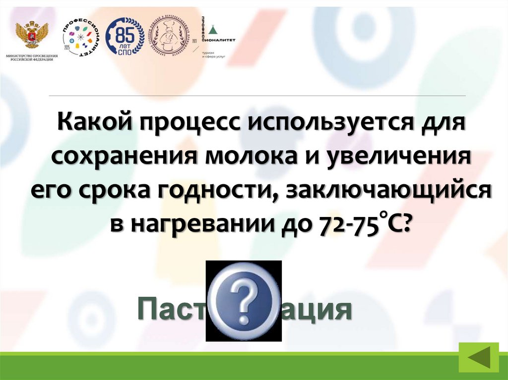 Какой процесс используется длясохранения молока и увеличения