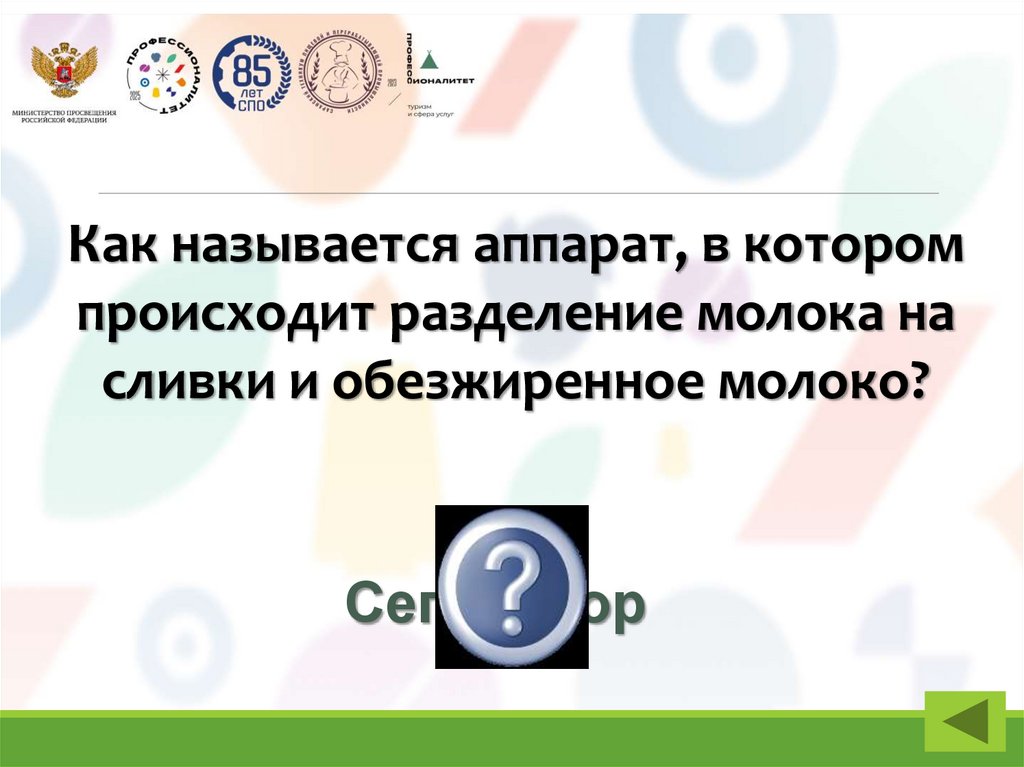 Как называется аппарат, в которомпроисходит разделение молока на