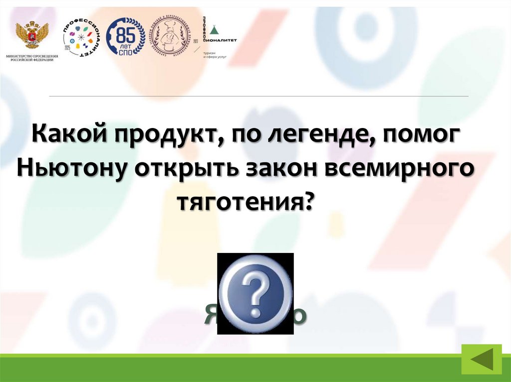 Какой продукт, по легенде, помогНьютону открыть закон всемирного