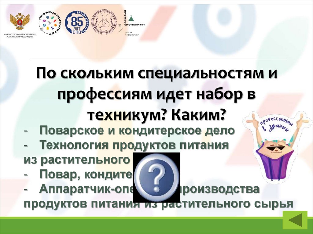 По скольким специальностям ипрофессиям идет набор в