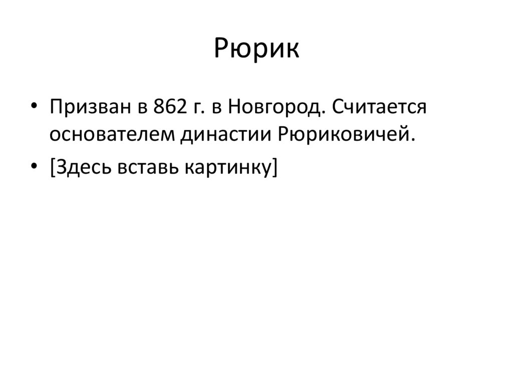 Рюрик• Призван в 862 г. в Новгород. Считается