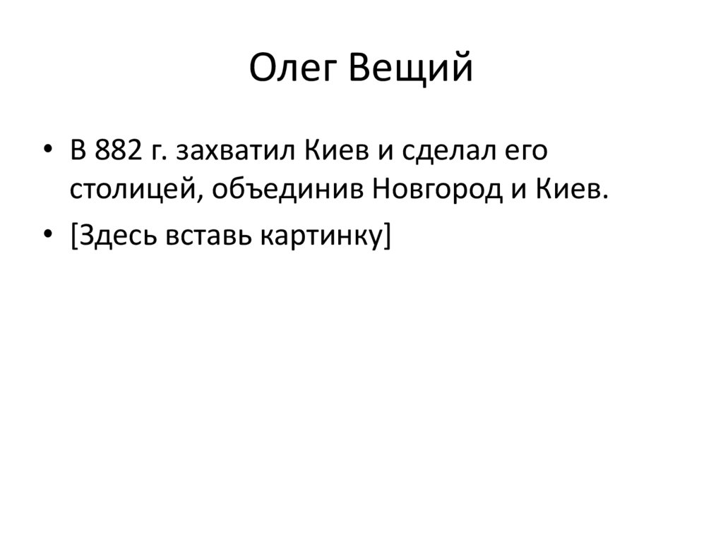 Олег Вещий• В 882 г. захватил Киев и сделал его