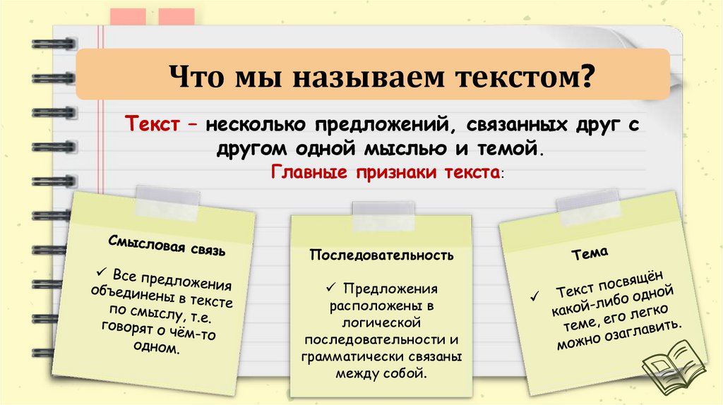 Что мы называем текстом?Текст – несколько предложений, связанных друг с