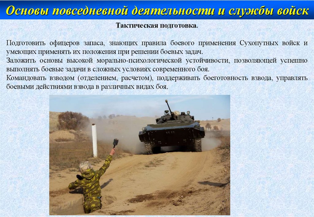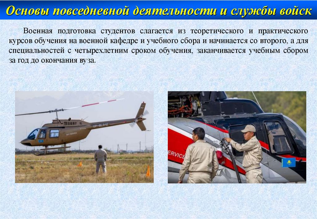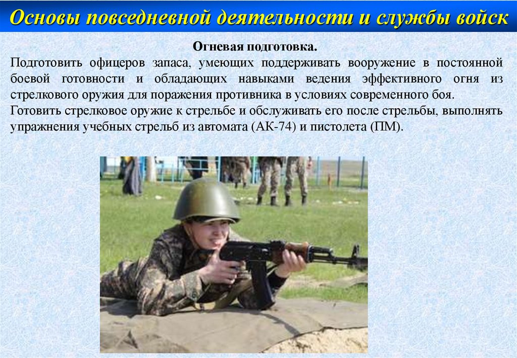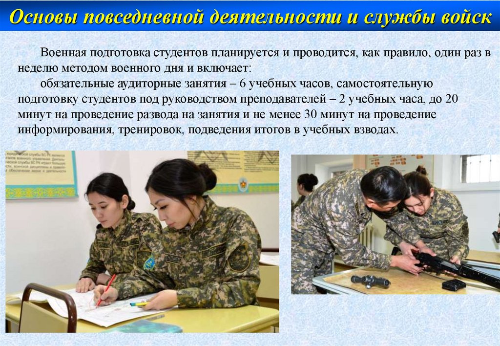 Основы повседневной деятельности и службы войскВоенная подготовка студентов слагается из теоретического и практического