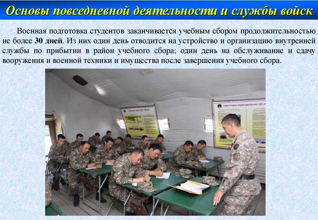 учетного времени и месячные учебные сборы. Военная подготовка студентов