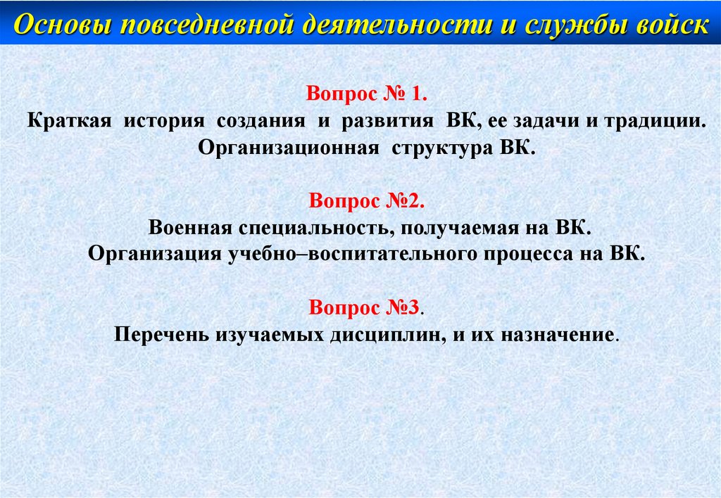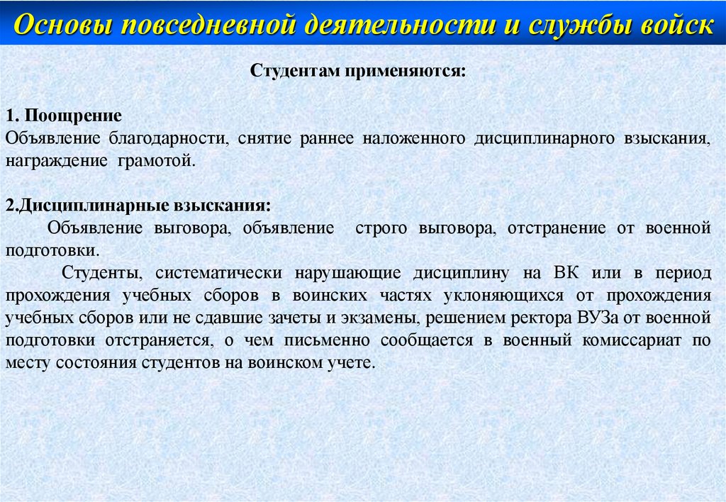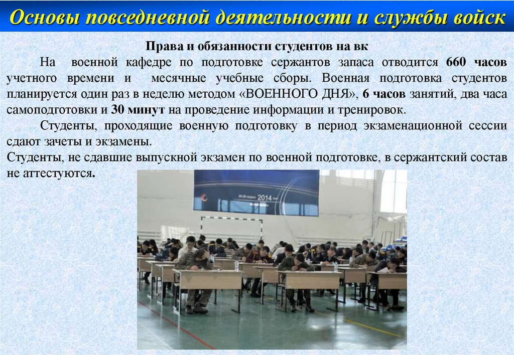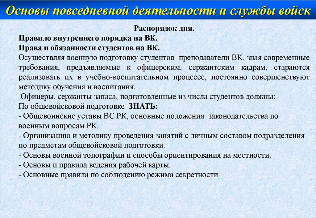 Основы повседневной деятельности и службы войскПрава и обязанности студентов на вк
