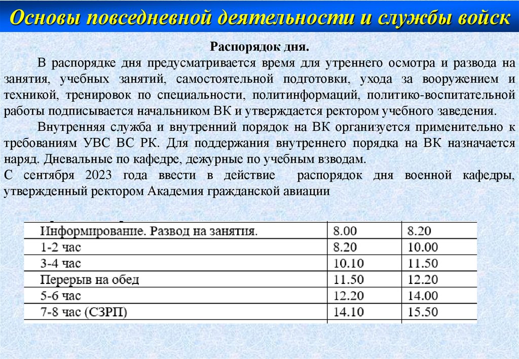 Основы повседневной деятельности и службы войскРаспорядок дня.