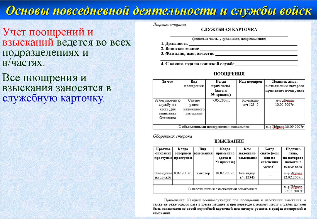 Основы повседневной деятельности и службы войскУчет поощрений и