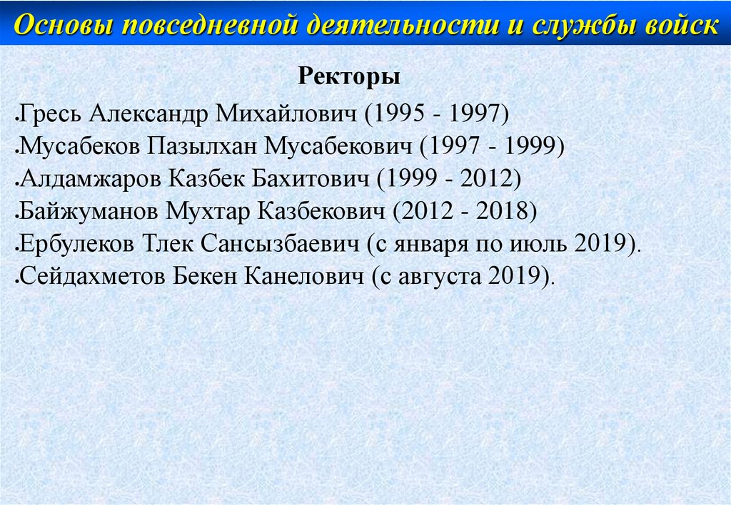 Основы повседневной деятельности и службы войскРекторы