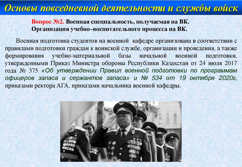 Основы повседневной деятельности и службы войскВопрос №2. Военная специальность, получаемая на ВК.
