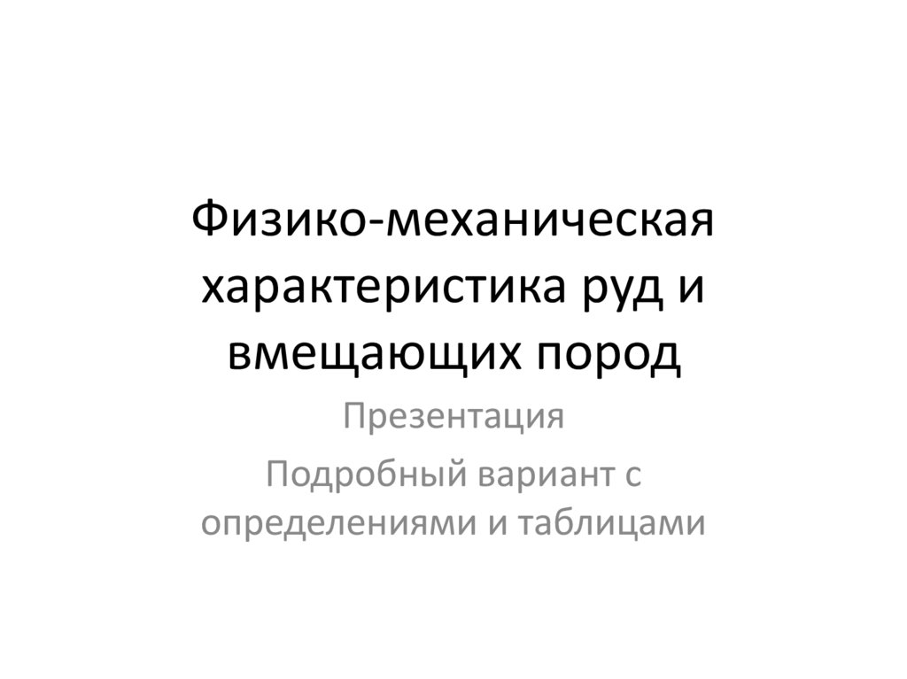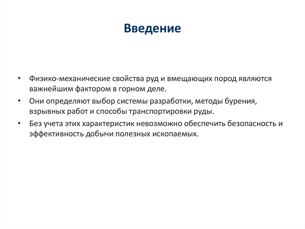 Введение• Физико-механические свойства руд и вмещающих пород являются