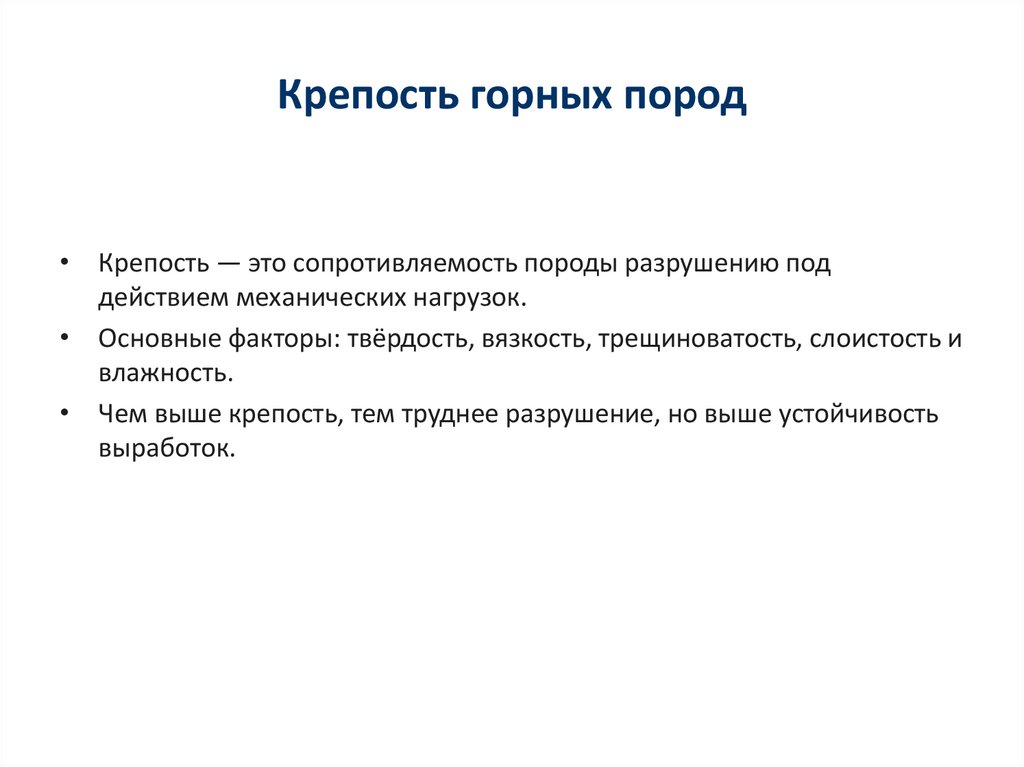 Крепость горных пород• Крепость — это сопротивляемость породы разрушению под