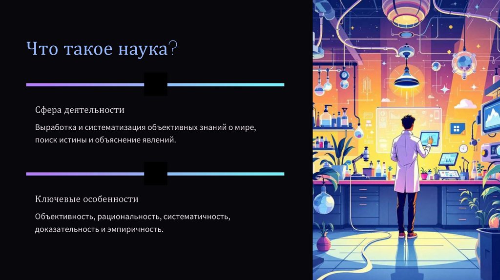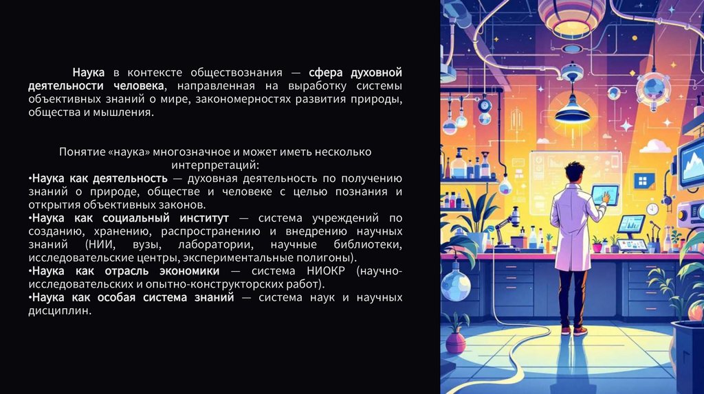 Наука в контексте обществознания — сфера духовнойдеятельности человека, направленная на выработку системы