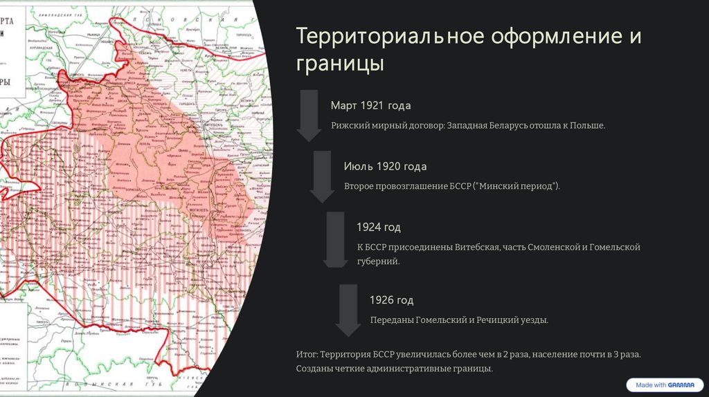 Итог: Территория БССР увеличилась более чем в 2 раза, население почти в 3 раза.