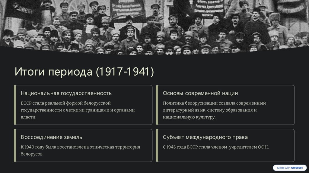 Итоги периода (1 91 7-1 941 )Национал ь ная государственность