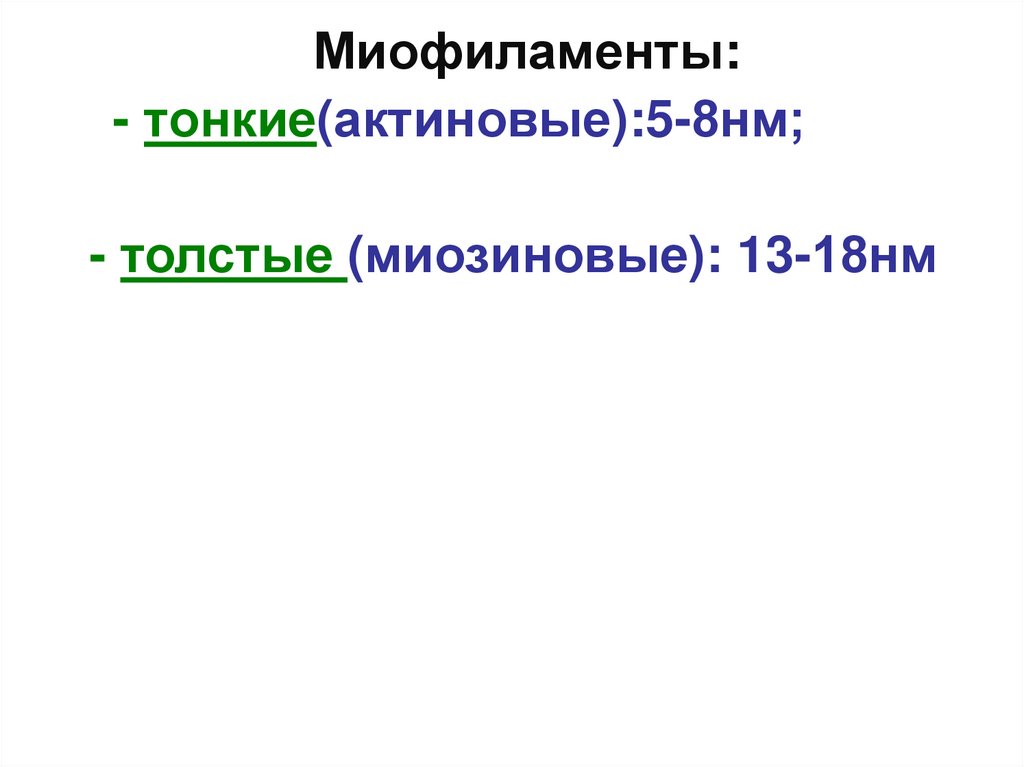 Миофиламенты:- тонкие(актиновые):5-8нм;