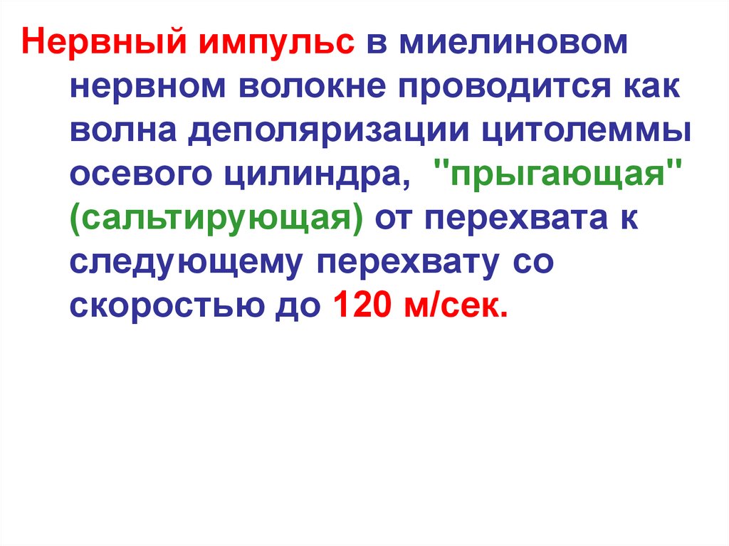 Нервный импульс в миелиновомнервном волокне проводится как